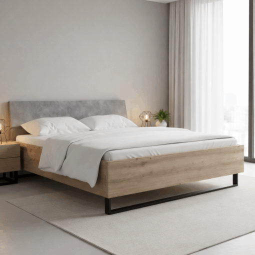 מיטה ענקית ומפנקת ברוחב 180 – קינג סייז. המיטה מתאימה למזרון בגודל 180/200. המיטה מגיעה בצבע אפור ועץ ונותנת מראה נקי וקלאסי לחדר. המיטה בעלה רגל מברזל בצבע אפור כהה.